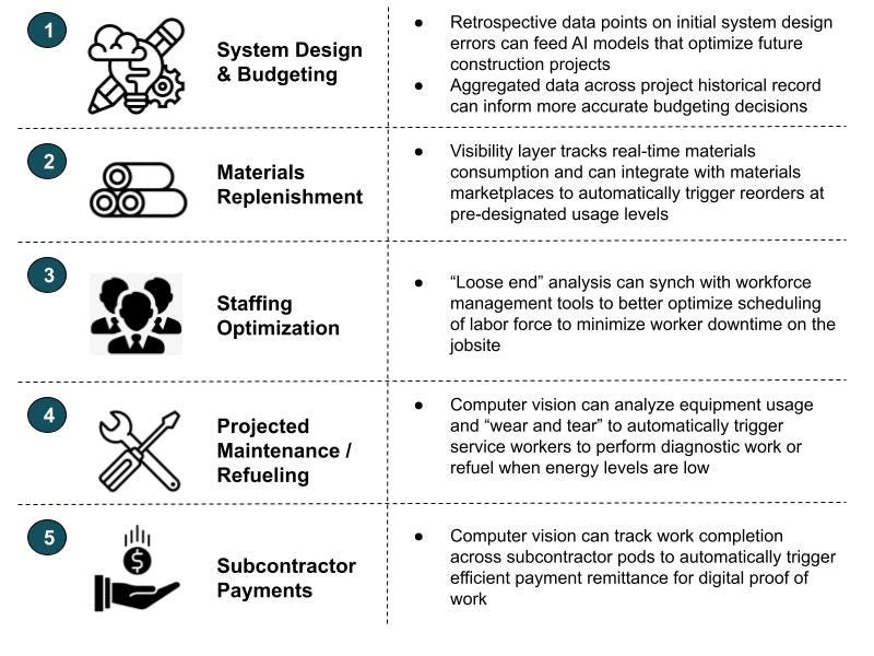 With this visibility and operating system layer in place, it is fascinating to consider the incredible value that Buildots will be able to unlock by building additional products and integrations into its construction software ecosystem. While the opportunities are plentiful, I believe some of the most meaningful ones are in system design and budgeting, materials replenishment, staffing optimization, projected maintenance / refueling and payments.